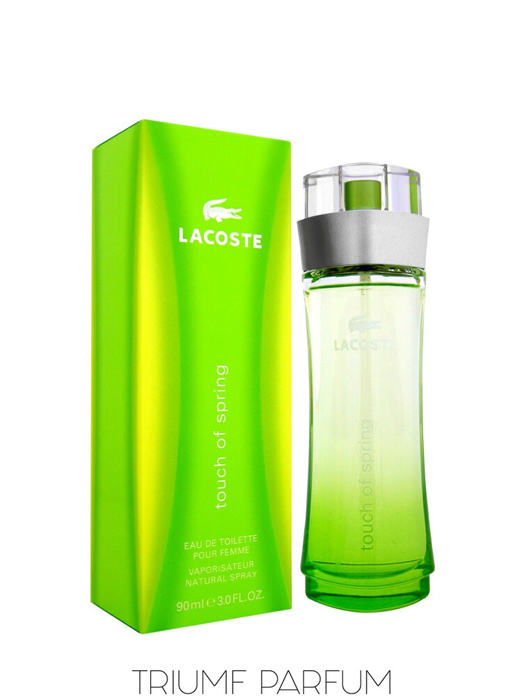 Lacoste Touch Of Spring — цветочно-древесный аромат с легкими зелеными нотами, которые буквально распыляют в воздухе ощущение молодой, свежей и расцветающей женской красоты. Начальные ноты аромата построены из свежих и прохладных акватических аккордов и нежных бело-розовых цветков айвы. В «сердце» чувствуются экзотические цветы амазонской кувшинки, душистый масличный османтус и сочные листья хоста. Соединение верхних нос с «сердечным аккордом дает непередаваемый на словах аромат весенней свежести и молодой прорастающей зелени. Закрепление общей картины ароматов выполнено внесением базовых нот.