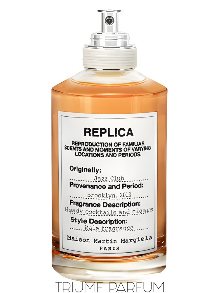 Maison Martin Margiela Jazz Club — первый парфюм бренда для мужчин, он входит в категорию кожаных ароматов. Вдохновением для создания парфюма послужил джаз-клуб, расположенный в Бруклине. Концепция первого мужского парфюма, метко названного Jazz Club, играет на мощной связи между запахом и памятью, вызывая ощущения пребывания в джаз-клубе Бруклина и воплощая легко меняющиеся и динамичные сцены. Композиция Jazz Club - ярко выраженный абсолют табака. В базовых нотах переплелись ноты розового перца, кубинский ром и освежающие цитрусовые ноты. В шлейфе аромата преобладают пряные ноты мускатного шалфея, стиракса и мускуса