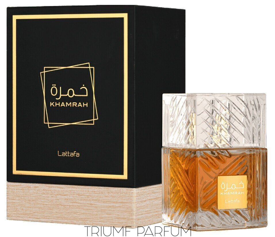 Lattafa Khamrah — роскошный восточно-пряный унисекс парфюм, сочетающий в себе драгоценные пряности, теплоту древесных нот и мягкость ванили.
